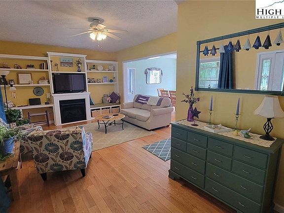 There are so many possibilities for this beautiful home on over 6 private acres just minutes from Boone. Outside is a nicely maintained yard in front and back. The back deck offers sunshine and mountain views looking over the trees, and in front you'll enjoy the covered porch and a fire pit for the cool evenings. Inside the main level has two bedrooms, an oversized primary suite with a private balcony with plenty of closet space plus the bathroom offers a jetted tub. The 2nd bedroom is on the other side of the main level with a large laundry room and full bath. The open kitchen has SS appliances including a gas range with beautiful hardwood floors in the living, dining and kitchen areas. The large living room has nice built-ins for a TV, computer work space and a gas log fireplace. The 2nd floor has two more large bedrooms, a kitchen and full bath and has been used as an Airbnb. Downstairs is an apartment that has new carpeting but does need some finish work in some areas along with the kitchen. There is a separate laundry and the other side has been a pottery studio for the owners.