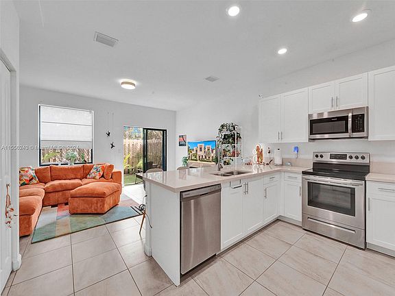 Don't let this outstanding opportunity slip away. Ideal for investors or first-time buyers. Welcome to this charming townhome, nestled in the sought-after Las Ramblas community. Spanning two stories, this residence offers 3beds|2.5 bths,spacious 1530 sq.ft, complete with a delightful outdoor patio that invites in a refreshing breeze.Step inside to discover modern features such as quartz countertops, stainless steel appliances, a smart WiFi thermostat, washer & dryer,& a tankless water heater for your convenience. The ground floor boasts stylish tile flooring, while laminate flooring graces the upstairs, creating a seamless and inviting ambiance throughout.Conveniently situated near major roads & renowned Aventura Mall, this gated community provides both privacy and accessibility.