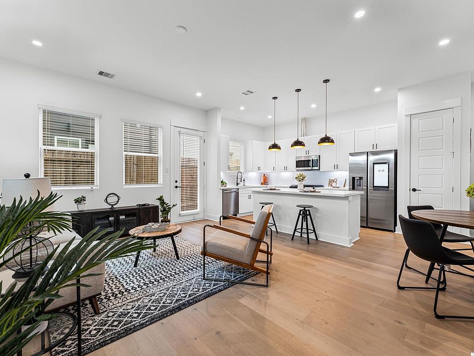 Modern hardwareEngineered hardwood floorsStainless steel appliancesUpgraded quartz countertopsPrivate fenced backyards