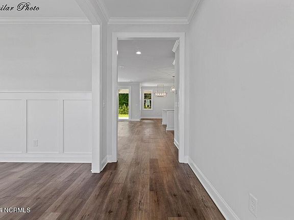 Be wowed by the Madison floor plan by American Homesmith in Magnolia Reserve! This 4 bedroom, 3.5 bath home has 9' ceilings upstairs and down! The covered front porch welcomes you into the foyer with the formal dining room off to the side. Walk through and discover the huge family room boasting a cozy fireplace with a custom-trimmed surround, the large breakfast area that leads out to the giant covered rear porch, and just wait until you see the kitchen! The spacious island, quartz countertops, custom lighting fixtures and lovely cabinetry will give you all the space and beauty you have been looking for. The grand primary suite is on the first floor and features a tray ceiling, big walk-in closet, oversized tile shower and dual sink vanities. The laundry room, powder room and a two-car garage round out the first level-now let's head upstairs. Here you will find three oversized secondary bedrooms and a beautiful shared full bath along with a full bathroom in bedroom 2. Magnolia Reserve is a gorgeous new neighborhood in the Surf City/Hampstead area with an easy commute to shopping, restaurants, services and yes! BEACHES! American Homesmith adds all those extra touches you've been looking for so that you can move in and start living that beach life right away. Don't miss out on seeing these elegant homes by this phenomenal builder, make your appointment and be wowed today! *The builder reserves the right to alter floor plans, specifications, and features. Similar photos, videos, and cut sheets are for the purpose of floor plan layout only and may include upgrades and/or features and selections that are no longer available and may not be included in your specific home. Included features vary from community to community. Buyers or Buyers' Agents should confirm included features and selections available with the listing agent and view the included features sheet for the development before presenting an offer. Buyer to verify schools.
