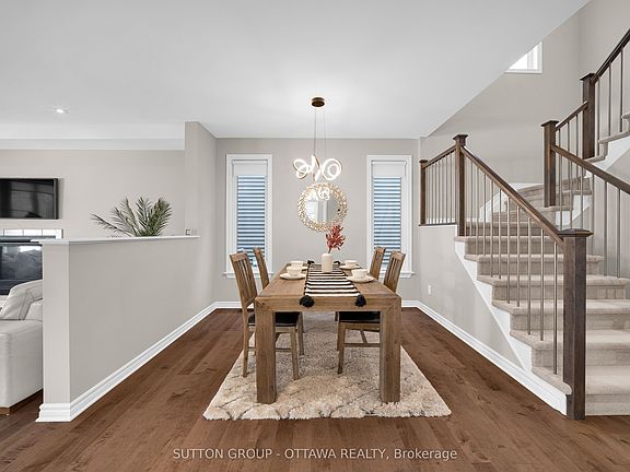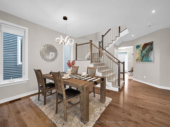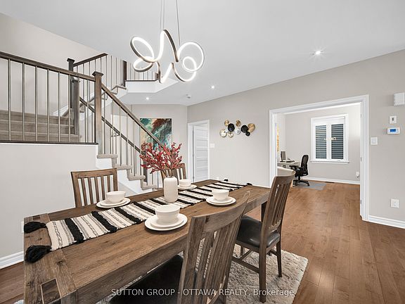 Welcome to 412 Odessa Way, a stunning TARTAN ASHTON model with over 3000 SQ FT of living space, featuring 5 BEDROOMS, 4 BATHROOMS, plus a MAIN FLOOR DEN. From the widened INTERLOCK PATHWAY out front to the FULLY FENCED, SOUTH-FACING BACKYARD with INTERLOCK PATIO, this home is both inviting and low-maintenance. Inside, you'll love the soaring 9-FOOT CEILINGS, HARDWOOD FLOORS, and LIGHT CERAMIC TILES that create a CLEAN, CRISP feel throughout. The MAIN FLOOR DEN with FRENCH DOORS offers privacy, while the OPEN-CONCEPT layout flows beautifully with a FORMAL DINING ROOM, a MASSIVE FAMILY ROOM, and a CHEFS KITCHEN complete with BREAKFAST AREA. Thoughtful touches like the CATHEDRAL CEILING and ENLARGED PATIO DOORS flood the kitchen and breakfast nook with natural light and frame perfect views of the SOUTH-FACING BACKYARD. The OVERSIZED mudroom with built-ins keeps everything neat and organized. Upstairs, the PRIMARY SUITE is a showstopper with a SUN-FILLED BEDROOM, WALK-IN CLOSET, and a LUXURY ENSUITE with SOAKER TUB and GLASS SHOWER. This level also includes a 5-PIECE main bath, SECOND-FLOOR LAUNDRY, and 3 generous sized bedrooms. The FULLY FINISHED BASEMENT adds a 5TH BEDROOM, 4TH BATHROOM, and a HUGE REC ROOM perfect for a GYM, PLAYROOM, or HOME THEATER. All of this in the heart of Barrhaven, just minutes to HWY 416, COSTCO PLAZA, and walking distance to SCHOOLS, PARKS, and SHOPPING!