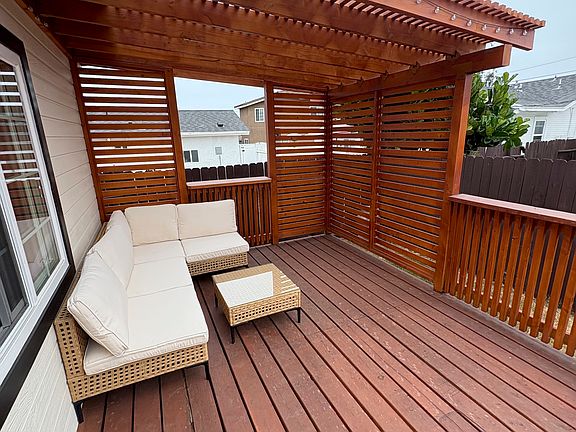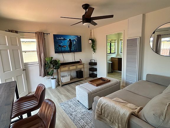 The backyard lights up with neon lights at night and has tiki torches. There are plenty of fruit trees and plants making it a perfect fit for those that appreciate a backyard oasis vibe. One of the only units in the area that offers a private deck and plenty of yard space making it a unique unit for those looking in the Chula Vista area.