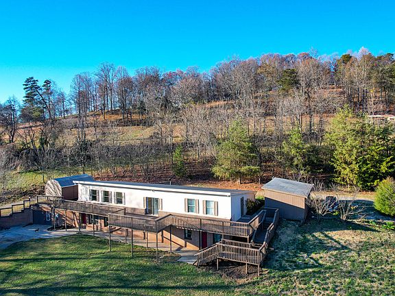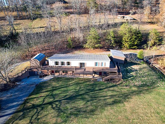 Great opportunity to own 10.5 acres of wooded and open land with two residences on a long private driveway. Works well as an extended family mini-farm or as an investment property. The large house has separate upper and lower 2100 sq ft residences each with their own private entrances, HVAC systems, septic systems, parking areas and electrical billing. The newly painted 3-bedroom 2 bath 1080 sq ft double wide home sits on a 0.78 acre lot about 350 feet from the main house. That's 5180 sq ft of living space in addition to 4 newly painted sheds and a earth protected concrete storage area! The upper level 4 bedroom residence has a large 22'x11' living room with new floors and paint with great views of your property. The upper-level kitchen has plenty of storage, cabinets, and countertop space. You have a laundry room on the upper level with a potential office located right beside this room. The 3 bedroom 2 bath lower-level features new paint in the main living room area, primary bedroom and hallway area. It has another nice sized living room, large kitchen, dining area and laundry room. New tile and paint in one of the lower-level bathrooms. In addition to the 3 bedrooms in the lower-level, there are 3 rooms with closets for the lower level and 2 storage rooms without closets. Primary bedroom has its own en-suite full bath. Don't miss the HUGE deck that wraps the entire face of the upper level. The deck features a patio area and two sets of stairs, providing access to both the upper and lower pairs of exterior doors. It is recently refurbished and ready for entertaining. Another recent improvement is a new UV water purification system for the on property well. This property is conveniently located between Kingsport and Rogersville. If you have been searching for major privacy, acreage and multiple residences here it is just call your Realtor to schedule a showing today. All information herein deemed reliable but not guaranteed.