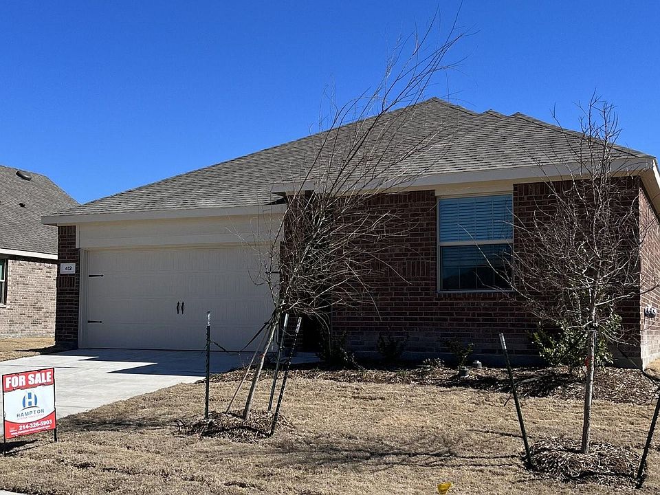 This single-story home has everything you need right on one floor. The open concept living area includes a modern kitchen, breakfast nook and family room with a back patio attached. Two bedrooms share a bathroom at the front of the home, while the owner's suite is tucked into a back corner for maximum privacy. Easy access to 30, shopping, and restaurants. Backyard with covered patio, great size of yard for family fun! The community in the quiet city of Fate, TX. Not far from Lake Ray Hubbard, Chamberlain Crossing is surrounded by parks, ponds and hiking trails. Homeowners have access to an onsite clubhouse, fitness center and a swimming pool.