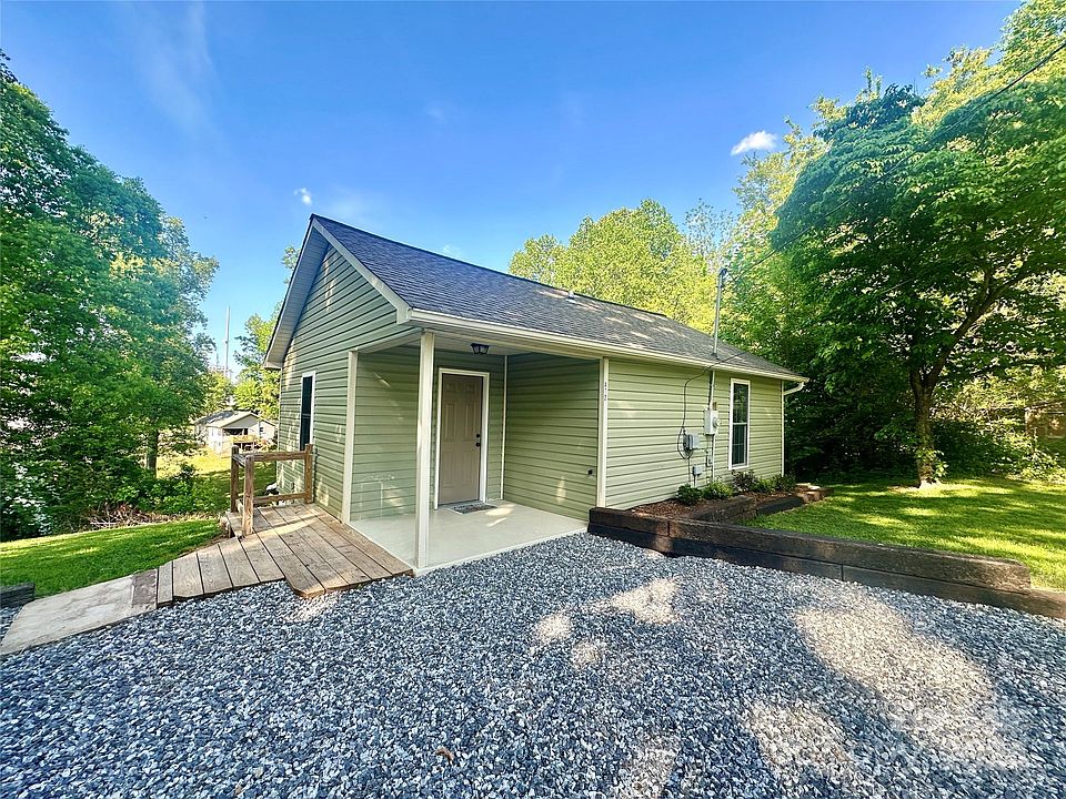 This lovely studio-style home in Valdese has been recently revitalized! The addition of new appliances including a refrigerator, range, microwave, washer and dryer, new kitchen cabinetry, countertops, new subfloor and LVP flooring throughout adds both style and functionality. The new 1.5-ton ductless heat pump is great for energy efficiency and year-round comfort. Other updates include a new shower, commode, pedestal sink, sheetrock, trim, interior and exterior doors and hardware, light fixtures, plumbing fixtures, outlets, receptacles, wall insulation, window blinds, and deck! The extra 1.12-acre wooded lot is a fantastic bonus and combined with the .65 acre lot the house sits on, you'll be getting a total of 1.77 acres! Convenient to town amenities such as restaurants, community events, and the Aquatic Center Pool. The 12x24 detached building with a garage door provides plenty of storage. This is a great property if you're looking for a cozy yet modern home with ample outdoor space.
