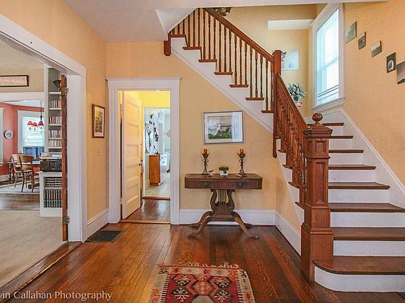 Pride of ownership in the completely renovated for turn-of-the-century Colonial in 2017. New expanded kitchen and baths, new electric and plumbing, new hardwood floors, crown molding, and new storage garage. In 2018 New extensive hardscaping and landscaping with irrigation was installed. Enter into lg foyer w/ beautiful oak flooring, newel post, and railings. French doors lead to the dining rm w/ bay windows. Bay window also in the living rm, which has a gas fireplace w/ wooden mantle, & quartz hearth. A new tile 1/2 bath with laundry is situated just off the kitchen. The eat-in kitchen has plenty of light, opens onto a large patio & a gardener's paradise of perennials that bloom from spring through fall. The 2nd floor has 2 bedrooms and full bath, as well as a master bedroom with ensuite bath. The 3rd flr w/ 2 bedrooms/offices & attic for storage. Perks include 2017 New HVAC system, 2015 water heater, 2013 roof, thermopane windows. Walk to Oak Grove, the Wyoming stop on the Commuter Rail, downtown Melrose's restaurants, stores, and Fells conservation area. Easy access to highway routes . A commuter's & gardener's dream.