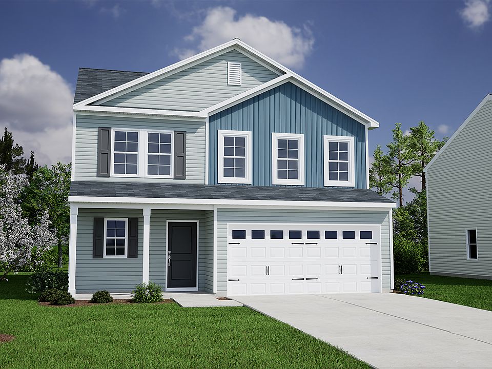This two-story home includes four bedrooms and two-and-one-half bathrooms, with the primary bedroom located on the main floor. A centrally located kitchen connects the eat-in area and great room. You have the option of attaching a covered back porch off the great room and of putting a vaulted ceiling in the primary bedroom. The primary bathroom comes with double sinks, double linen closets, a private commode and a wide walk-in shower all leading to a walk-in closet. Upstairs, you'll find three bedrooms with a second full bathroom which also has double sinks, and a spacious loft space.