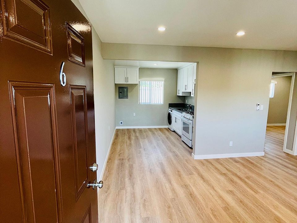 Second floor, light and bright, newly remodeled unit with in unit laundry. AC/Heat. Parking included. No pets. ** Please note, photos are of a similar unit. Owner pays water. Tenant pays gas and electricity.