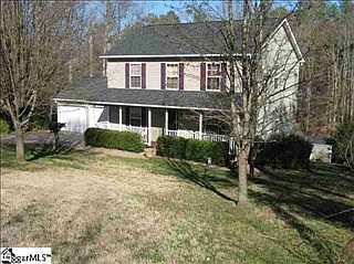 4 bedrooms and a private wooded lot in a quiet neighborhood! Convenient to Easley and Greenville! Main level has rocking chair front porch, living room, dining room, breakfast room, laundry and kitchen with new stainless steel appliances. All 4 bedrooms and 2 baths upstairs. Master has walk-in closet and huge master bath! Back yard has two buildings (one with electricity). Great value for this much space!!