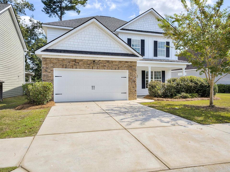 Beautifully remodeled 4 bedroom | 2.5 Bathroom home has been updated top to bottom with gorgeous finishes. Enjoy many years of stress-free living with too many updates to list: new exterior HardiPlank siding, new roof, new flooring, renovated kitchen, remodeled baths, modern black & gold light and plumbing fixtures throughout, and more. Foyer introduces the open concept dining room with attractive wainscotting. Spacious great room features tray ceiling with fan and opens to the back patio and the kitchen. Perfect space for entertaining and low-maintenance living with open floorplan and luxury vinyl plank through main level. Kitchen with breakfast nook also has a large dining bar, granite counters, subway tile backsplash, and stainless steel appliances to include refrigerator, dishwasher, and smooth top range. Lots of storage space with walk-in pantry and large laundry. Half bathroom downstairs for convenience. All 4 bedrooms upstairs are carpeted and all bathrooms have beautiful marble patterned tile. Private owner's suite with tray ceiling and fan features en suite bath and walk-in closet. Owners bath boats dual sink granite vanity, natural dressing table, and a stunning spa shower. Privacy fenced backyard and two car garage complete the total package in this better than new home. Schedule your showing today.