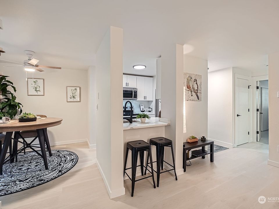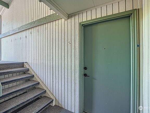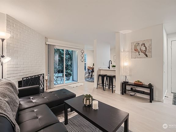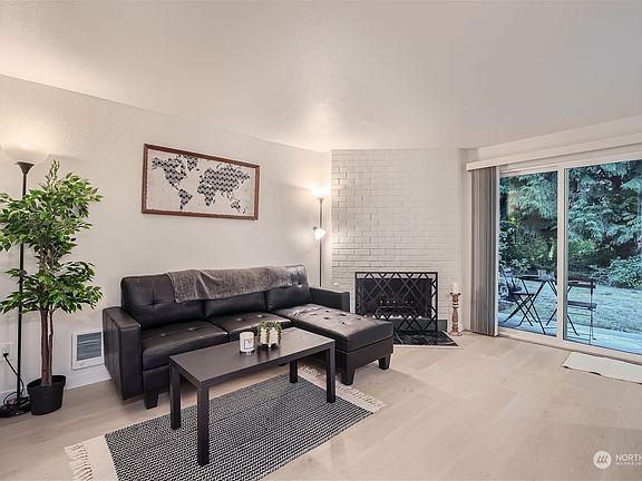 Chic contemporary remodel in city, this ground floor condo will meet all your expectations. Efficient layout includes modern kitchen with Quartz countertops, stainless steel appliances, bar seating, open to dining & living room with cozy fireplace. Oversized bedroom to accommodate your furnishings with workspace & a spacious closet. Additional features: New windows, in-unit laundry, covered patio with storage overlooking treed buffer, ample parking & low HOA dues which include an outdoor pool for those hot days. Ideal location near library, hospital, freeway, public transit, Amazon Fresh, Dick's, trails, Puget Sound, golfing & the best cuisines around! Immerse yourself in the comfort, convenience & vital community that West Green embodies