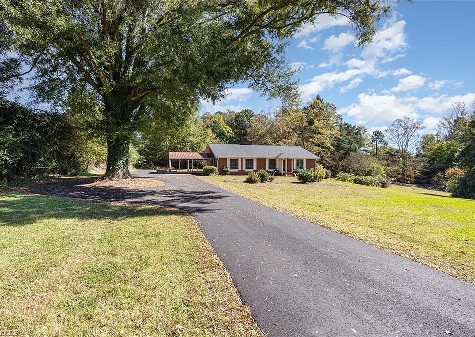 Welcome to this charming 4-bedroom, 2.5-bath brick ranch situated on just over 1 acre in the heart of Downtown Mocksville! Just a two-minute walk from the square, this well-maintained home features hardwood floors, a cozy living room with fireplace and built-ins, and original wooden cornice boards. The vintage kitchen boasts metal cabinets with striking red laminate tops. The partially finished basement offers a second fireplace, full kitchen, and bedroom or in-law suite with walk-out access to a patio. Enjoy outdoor living under the covered pergola beside the two-car carport, or relax in the screened-in entertainment area with electrical hookups for TV or stereo. A perfect blend of classic charm and modern convenience—steps from downtown dining, shops, and events!
