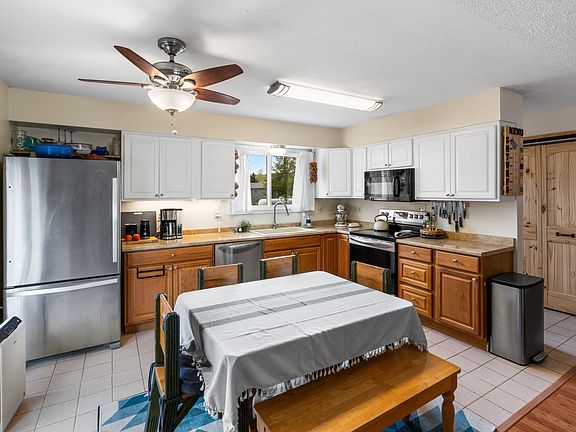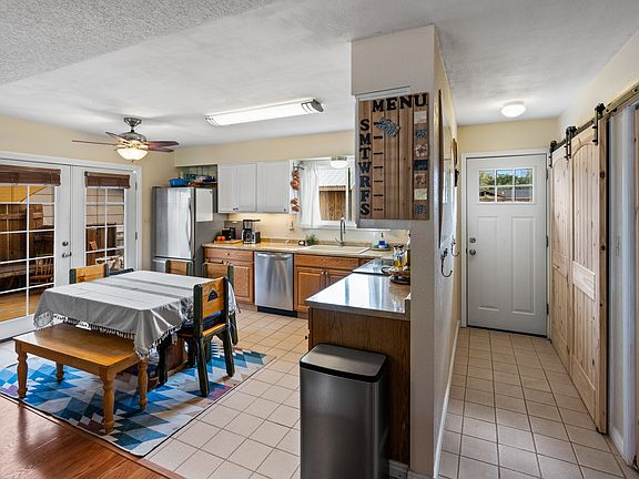 Welcome to this charming ranch-style home nestled across from a serene park, offering picturesque views and an exciting atmosphere. Step onto the spacious deck, perfect for lounging or entertaining, and soak in the beauty of your surroundings. Relax in the luxurious Mountain Springs Spa Hot Tub, a haven for unwinding after a long day. Checkout the clubhouse with deck. Inside, warmth abounds with a cozy Rinnai wall heater, ensuring comfort year-round. This home features three bedrooms and one bath. The kitchen will have new acrylic countertops to be installed on June 6th. The fenced backyard provides privacy and security, while the meticulously landscaped yard adds to the curb appeal with 2 Apple Trees and Raised Bed Garden with irrigation setup built in 2020 . Additional highlights include a convenient 2-car detached heated garage built in 2021 and storage shed. Schedule your showing today.