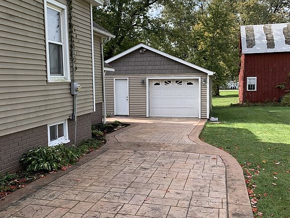 Charming 3-bedroom home, with a 1.5 car detached garage w/opener. The driveway has a unique stamped concrete finish! The 2-tier composite deck is great for entertaining & overlooks the nice, landscaped yard! Welcoming front porch leads into the spacious living room. Hardwood floors & beautiful woodwork are just some of the lovely features this home offers. The kitchen has nice cabinets & newer countertops (appliances stay but not warranted), dining room, half bath & first floor bedroom, that is currently being used as a den. The 2 other bedrooms & full bath are located on the second floor. The DRY basement is partially finished with a non-conforming bedroom, laundry room, with walk-in shower, utility sink, toilet & storage room. The following items stay with the home: kitchen butcher-block moveable counters, shelving in the 1st floor bedroom, children's bed, black leather couch in basement, that is currently set up as a bed w/new mattress, big screen TV, side table w/3 drawers, black desk, cherry wood desk w/shelves and red furniture in backyard corner. The seller reserves the 1st floor bedroom curtains & the rest stay. There are several items for sale - ask the listing agent for an itemized list.