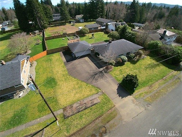 This quality built 1950's home, has cedar siding, a hardwood entry which opens into spacious living & dining room w/coved ceiling, fireplace w/propane insert. Features a good sized kitchen, room for in-kitchen dining, a sizeable utility room, recently remodeled bathroom & 2 bedrooms. Much of the work has already been done, a newer roof, furnace, heat pump & new laminate flooring. Detached 2 car garage, and 16140 sq ft lot, partially fenced, gardeners - lots of room for gardening.
