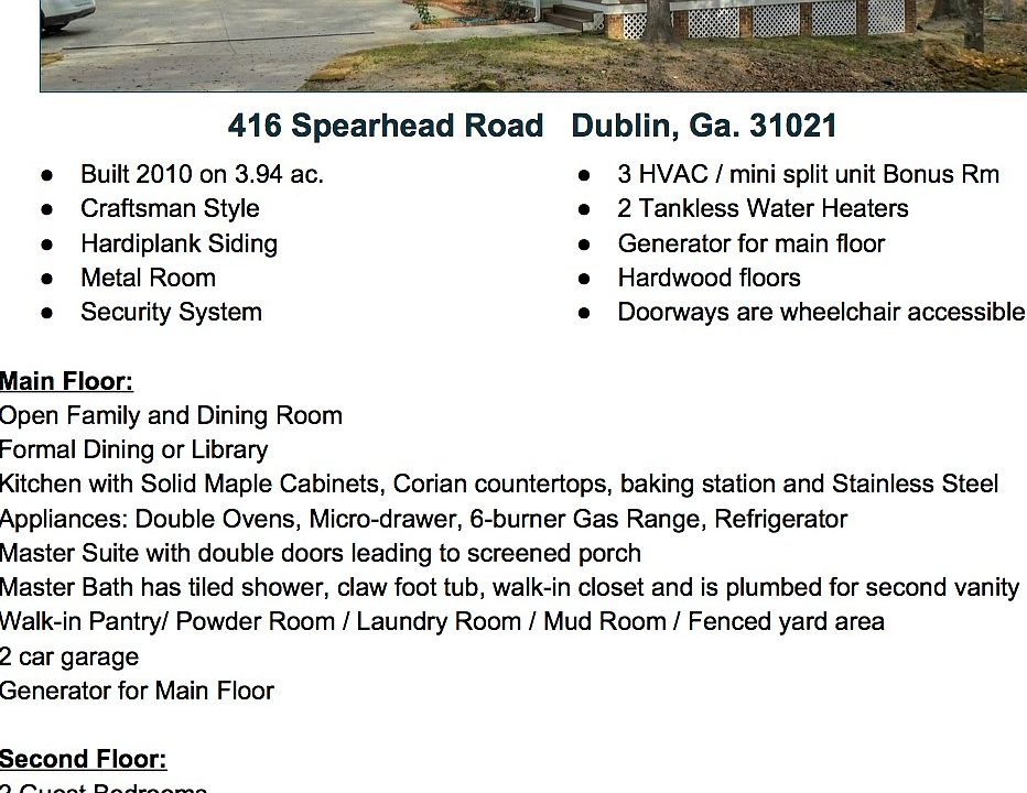 This 4078 square foot single family home has 4 bedrooms and 5.0 bathrooms. This home is located at 412 Spearhead Rd, Dublin, GA 31021.