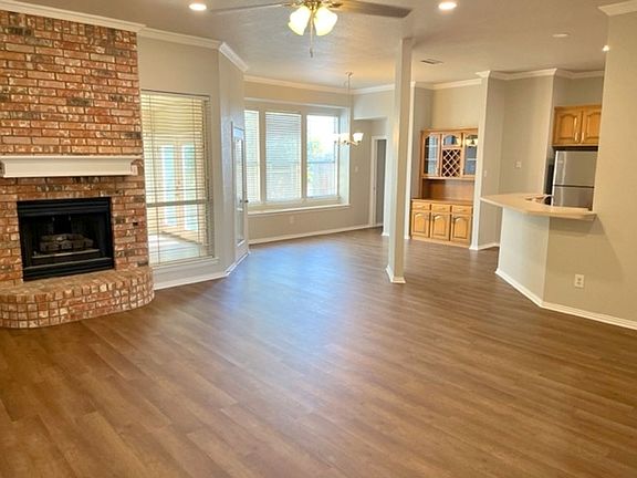 Beautiful three bedroom two bath home in private cul de sac. Spacious living area with gas log fireplace. Dining area with built in cabinets. Kitchen with breakfast bar, tile backsplash and plenty of storage space. Bonus room off of kitchen could be used as a large pantry or storage area. Home features luxury vinyl plank flooring. Primary bedroom with ensuite bath featuring a separate shower, garden tub, two sinks and walk in closet. Primary bedroom also has a door leading to a private patio. Other two bedrooms are nice sized. 27x13 sunroom overlooks the backyard. Separate utility room with cabinet storage. Fenced backyard with storage building. Two car garage! Convenient location to I-35W. A must see that won't last long!