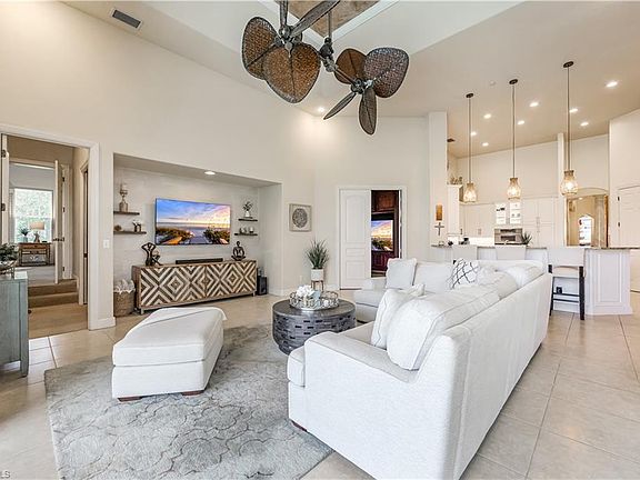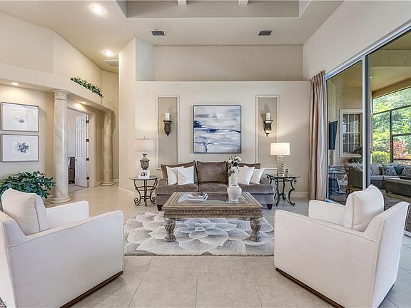 This exquisite estate home in the prestigious Terracina neighborhood of the Vineyards offers 4 bedrooms plus a den, 4,935 square feet of living space, and a thoughtful layout designed for both comfort and entertaining. A bonus guest wing and private home theatre provide exceptional versatility, while the kitchen serves as the heart of the home with a center island, custom cabinetry, premium appliances, and abundant counter space for both casual dining and formal gatherings. The private primary ensuite is a serene retreat with tranquil views, spa inspired bathroom and generous closet space. Outside, the expansive lanai showcases highly desirable southern exposure with panoramic golf course views, multiple seating areas, and a swimming pool and spa, creating the perfect indoor-outdoor lifestyle. Additional highlights include a three-car garage, zoned HVAC, ample storage, and spacious gathering areas throughout. Tucked away in the heart of Naples, Vineyards Country Club offers an unrivaled country club experience just minutes from beaches, theatres, upscale shopping, dining, community parks, and boating on the Gulf. The 1,400-acre master-planned Vineyards community features approximately 2,800 residences along with convenient access to everyday needs including Publix, Walgreens, banks, dining, veterinary services, and Physicians Regional Hospital. At its center is the award-winning 70,000-square-foot Vineyards Country Club, where members enjoy golf, tennis, pickleball, bocce, fitness and wellness facilities, spa services, swimming, and an unmatched year-round social calendar in a vibrant, family-friendly atmosphere. With 36 holes of championship golf, a rich history, and a warm sense of community, the Vineyards offers a lifestyle that blends elegance, convenience, and connection in one of Naples’ most sought-after settings.