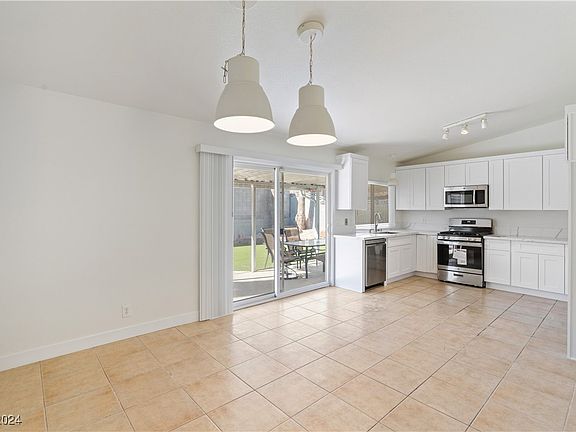 Single Story home with 3 Bedrooms / 2 Bathrooms, covered patio and sparkling pool in convenient location, easy access to US95 & Summerlin Pkwy. Garage has been converted and is an excellent space with tons of potential. Both Primary bedroom and Kitchen have access to the spacious backyard and pool. Interior is freshly painted. New carpet, new manmade flooring, new kitchen and bath cabinet with new quartz counter tops, new stainless-steel stove.