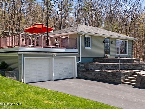 Realize this exceptional 3-bedroom, 2-bath home in the Town of Athens, NY, thoughtfully upgraded and meticulously maintained inside and out. Step inside to find beautiful craftmanship of the hardwood floors and a bright, modern kitchen equipped with Whirlpool stainless steel appliances, including a five-burner stovetop. A striking blue stone walkway leads to the front entry, while the backyard offers a private oasis with a blue stone patio, custom railings, and a roll-out awning—perfect for outdoor dining and entertaining. The exterior features new windows and siding, composite decking, and extensive drainage with daylight drains and gutter management for peace of mind. Smart exterior upgrades include timers and motion sensors for lighting, upgraded electric throughout, custom lighting in multiple rooms, underground electric services run to the shed, the lighting and exterior outlets ideal for grilling and gatherings. Every detail has been thought of and cared for, right down to the humidistat-controlled attic ventilation system and impeccably maintained lawn, supported by a multi-zone sprinkler system fed by its own well. A truly turn-key property offering comfort, quality, and thoughtful craftsmanship—ready for its next owner to enjoy.