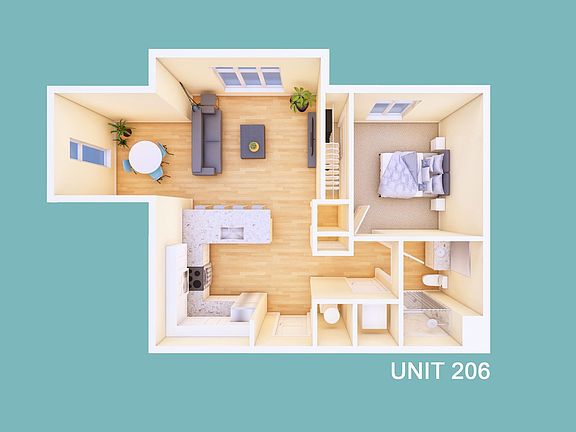 Floor-to-ceiling windowsAmple storage spaceQuartz countertops