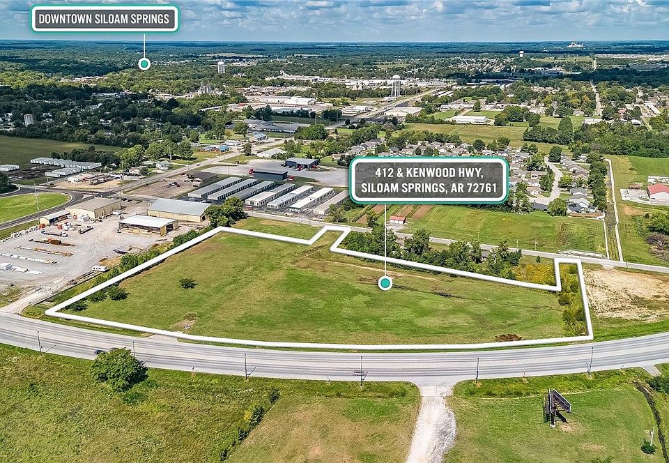 8+ acres m/l of open ready to develop land. Extreme high traffic area with over 800 feet of hwy 412 frontage also fronts kenwood street. Countless options. All utilities on or near site. Seller may consider divide.