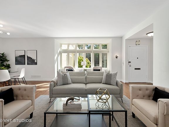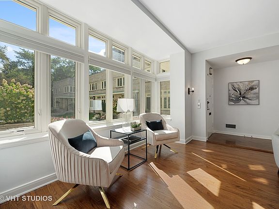 Sun-drenched & spacious 3 bedroom, 3.5 bath home full of character and charm on beautiful, tree-lined Wellington Ave, in prime east Lakeview! Lives like a single-family home with three levels. This home boasts class vintage details with a mid-century modern vibe, and is updated with today's amenities throughout. Entry foyer opens to spacious, extra-wide living room with wood-burning fireplace & built-in cabinetry. Features a full wall of south-facing windows for all day sunlight overlooking the lush and landscaped courtyard. Large & open dining area with custom Rejuvenation brass chandelier & updated sconce lighting. Beautiful hardwood floors, custom window treatments & desireable powder room on main level. Cook's kitchen features white cabinetry, new stainless steel appliances and granite countertops. Upper level offers EXTRA large, light-filled bedrooms with en-suite baths. Primary bedroom suite features a walk-in closet, additional closet plus built-in bookcase; en-suite primary bath with option to expand. Lower level features family room with perfect home office nook, 3rd bedroom with attached bath and laundry room. Tons of closet space throughout. Large laundry room with full size washer/dryer, adjacent laundry sink. Parking space included. Best Lakeview location steps to the lakefront, bike/running path, transportation, grocery, tons of dining options & more. Option to build private roof deck. Nettlehorst School District.