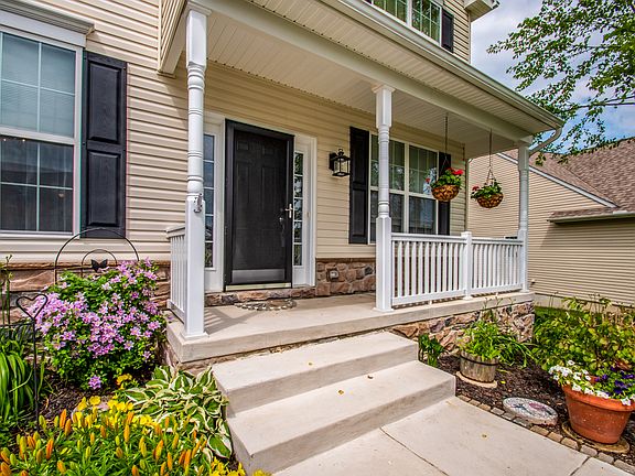 Meticulously maintained 4 bedroom 3 full bath Jamestown Federal model home in the community of Welsh Hill Preserve. Many upgrades including Hardwood flooring throughout most of the first floor (foyer, office, dining room, kitchen, family room), Kitchen with GE stainless appliances, 42~ cabinets, granite counter tops and recessed lighting, Family room with two story vaulted ceilings, remote controlled blinds, ceiling fan, upgraded gas fireplace ,speaker system , door to the composite deck looking out at the mature trees. First floor bedroom with inside entrance to a full bath, 17x16 Master Suite with walk-in closet and a luxury bath with soaking tub, shower double vanity with granite counters and soft close drawers. 2nd floor laundry room with built in cabinets and utility tub, Hall bath with extra-long double vanity and mirror. Partially finished basement with 9 Ft ceilings an egress window AND a full walk out on the unfinished side. Plenty of storage space. Rainni tankless water heater , Sump pump with battery backup. Underside of the deck had been enclosed and pavers added for outside storage. This home is a must see!
