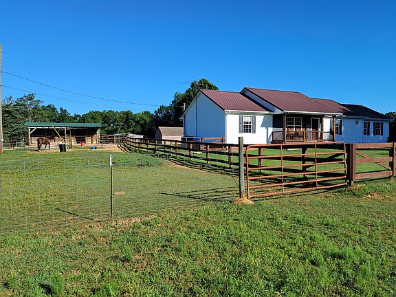 Looking for the perfect mini-farm! Well this one is on just over 11 acres with the perfect mix of pasture and woods. The entire property is fully fenced and gated. An amazing trail system throughout the entire rear of the property for horseback riding, hiking, all terrain biking, or motorsports. 5 horse stalls. A newer 3 car carport for equipment storage. A very nice updated 3BR/2BA home with 4 garages (2 attached and a detached 2 car garage/workshop). Granite countertops in kitchen, Vaulted ceiling in living room which is open to the kitchen. Rocking chair front porch and a gathering room at the back of the home with a deck overlooking this beautiful property.