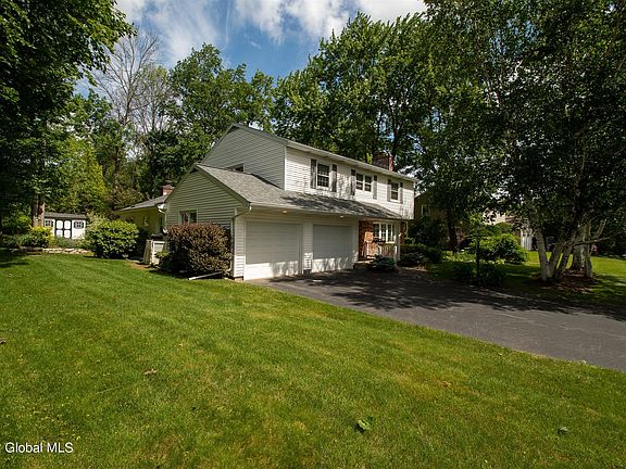 Let the search cease! Everything you've been looking for is in this well maintained colonial in Avon Crest-a popular and centrally located Niskayuna neighborhood near the town of Colonie. 4 spacious brs., 2 1/2 ba., with gracious formal dining rm. and living rm. with large bay window that brings in lots of natural light. The eat- in kitchen adjoins the family room with vaulted ceiling and skylight to welcome you home. 2 gas fireplaces, central A/C, hardwoods throughout, 1st floor laundry, ceramic tile baths, ensuite double sink master bath, walk in closet, and bonus area.The Trex deck and over 1/2 acre, level, deep, well landscaped lot will accommodate all your recreational fun. Also includes storage shed. Gas heat with heat pump and Generac generator.Don't let this beautiful home go by!