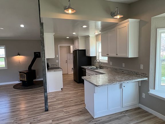 Cute move in ready 3 bed 2 full bath North Rigby Labelle home sitting on over an acre. Fully updated interior including flooring, paint, windows, lighting, kitchen, appliances & millwork. Vaulted ceilings in the living room make this home feel open & bright Big coat closet in the living room w/ an additional closet & drawers in the hallway. Cozy wood stove nestled in the corner make a perfect place to nestle up in a recliner & read a book. Cute bench seat off the dining area overlooking the side yard. New kitchen cabinets & counters & graphite appliances. Kitchen has an eating bar as well as space for dining table. Great Laundry/ Mud room w/ access to garage & back yard. Laundry also features cabinets over the washer and dryer & pantry space in the closet. Electric wall heaters in each room give you the ability to turn off heat if room not being used for the day. Master sweet w/ a full bath is a bit larger than the 2 additional cozy bedrooms. Home has a full 2 car garage & sits on a 1+ acre lot that & home overlooks an open field from the front door. Great location close to downtown Rigby, Hwy 20 & Rexburg. Tenant pays for electricity & garbage. Home is on well & septic.