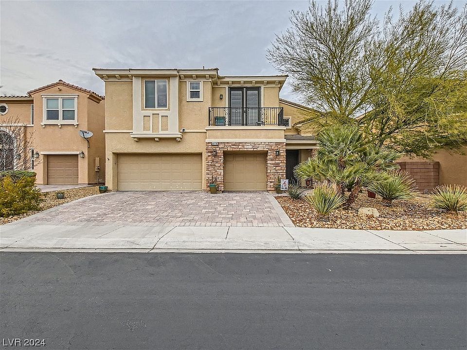 Stunning 4 bedroom former model home. Pride of ownership! Vaulted ceiling in kitchen and family room. Convenient butler pantry services the dining room and the spacious kitchen which features a large island, granite counters, new sink, refurbished cabinets, new garbage disposal, backsplash of beautiful glass tiles and a breakfast nook. Primary bedroom is downstairs and boasts a large walk in closet and private bath. Huge upstairs loft with barn doors for privacy. Loft balcony overlooks the home front and has a bar for entertaining. Sparkling pebble tech pool and spa. Covered patio with built in BBQ & cooking counter. This beautiful home comes complete with gorgeous new carpet upstairs, all appliances, water softener, ceiling fans, utility sink and custom window treatments. The property has solar panels for the pool and the house and is leased through Tesla. Near by amenities include parks, freeway access, shopping, restaurants and a local casino.