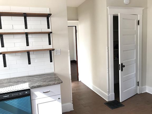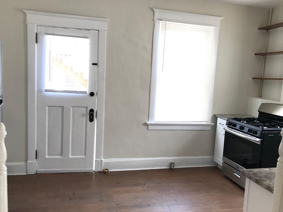 This beautiful 1-bedroom apartment in Norwood is part of a 4-family building built in 1915. Its historical charm is still intact with restored hardwood floors, the original fireplace and mantel (non-working), and craftsman style woodwork. But it's been through a full renovation: new appliances, tile, granite, backsplash, bathroom fixtures, windows, and paint. It has a private porch out front and off-street parking around back in a spacious 2-car driveway. Coin-op laundry in the basement. 1 pet allowed, dogs/cats OK. Dogs must be fully house trained, crated or non-destructive, non-disruptive. Cats are indoor only. The building is privately managed by its owners. Owner pays water, trash, recycling. Tenant pays gas, electric, including gas furnace, gas stove, two electrical window AC units.