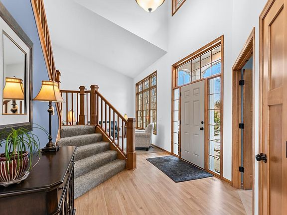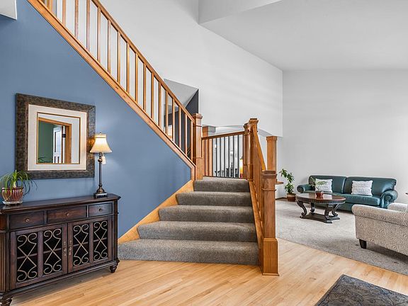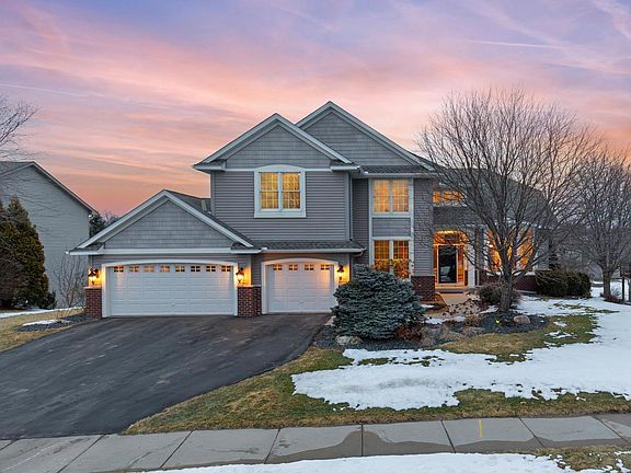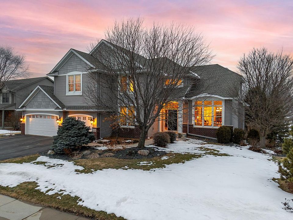 bring in abundant natural light while preserving privacy and peaceful backyard views. Grand vaults and 2 story family friendly living with a slate gas fireplace. The kitchen is beautiful with a large center island and cozy eat in dinette. Main floor office, spacious mudroom and laundry right off of the insulated heated garage. Refinished hardwood floors, new paint, new 97% efficiency furnace, and carpet. Two staircases lead you to the luxurious primary suite located on the upper level, offering privacy and a peaceful retreat. The primary bath features a double vanity, corner soaking tub and a separate shower. You will love that every bedroom features an oversized or walk-in closet. Three more spacious bedrooms and a full bath complete the upstairs. The finished lower-level features enhanced comfort with a warm and dry subfloor and exceptional amenities including a theater room, fitness area, refreshment center, ¾ bath and open areas suitable for a billiards table. The fifth bedroom is ideal for guests or extended stays. The tranquil tree lined yard is a welcome backdrop for family fun, offering both beauty and seclusion, yet remains easy to maintain. 1 block off lake Minnewashta and a beach access, Round House Park offers tennis, pickle ball and a playground. Ideally located with quick access