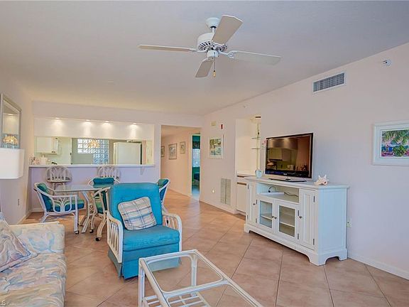 Roomy 2 bedroom and 2 bath birch model. Convenient 1st floor with enclosed lanai with superb view overlooking the golf course and lake. Only steps away from the clubhouse and main pool with all their surrounding amenities and activities. Covered parking with outdoor storage locker. The HVAC system was replaced in 5/2018. Breckenridge offers resort style amenities such as bundled golf, 5 swimming pools, a very active tennis club with 8 Har Tru tennis courts, pickle ball, bocce and a recently upgraded clubhouse with much daily activity. This community has a reputation of being friendly and very socially active. Estero is in the heart of Southwest Florida only minutes from the airport, beaches, 3 huge shopping malls, restaurants galore, public library and state park. Short drive to Naples or Fort Myers. WiFi included. You can walk through this home using MATTERPORT virtual tour. Once you open the 3D image, click on the walking icon at the bottom left.