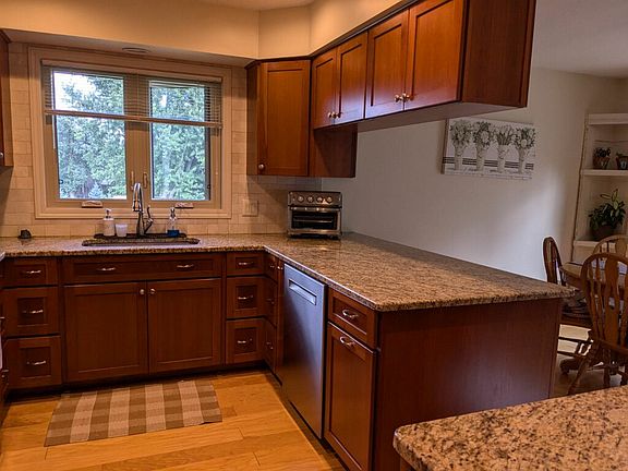 Available December 1, 2025, 4-bedroom, 2-bathroom split-level home with just over 2,000 square feet of living space. This single-family home is in the highly sought-after Country Club Manor neighborhood. The property features a huge lot that backs up to a serene, wooded area, offering privacy and a beautiful view. The home comes with some great furnishings to make your move-in easier. The upstairs living area includes a big screen TV, kitchen table and four chairs, queen-sized bed is located on the main level. Downstairs, the cozy living area features a gas fireplace and a comfortable couch for relaxing and one full size bed.. The large kitchen features granite countertops and a dishwasher, making meal prep a breeze. A separate laundry room with a washer and dryer is also included. Enjoy the outdoors with a small deck leading to the backyard, which has a newly installed awning (summer 2025) for shade. A new sun shade was also added in the summer of 2025 to the large picture window, helping to keep the home cool and comfortable.