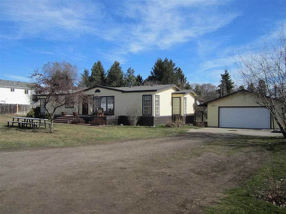 Well maintained mfg home set back on almost an acre with convenient access to shopping, dining, the centennial trail & the river. Huge 2 car insulated garage with shop space & wood stove. bonus "storage" structure on the property that could be converted to a rental or additional separate living area. The home boasts high ceilings, large living & dining rooms, beautiful master bedroom with 5 piece bath & walk-in closet, newer gas furnace, central AC, covered back deck and a spacious front deck. Welcome home!