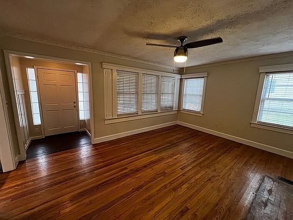 Beautiful cozy 3 br, 1 ba home! Nice front porch! Level yard, fenced in backyard with a nice big metal building. Metal roof! Central ac , central gas heat! Stove and refrigerator included! Original hardwood in most of the home! Saks school district, 1 minute drive to school!!