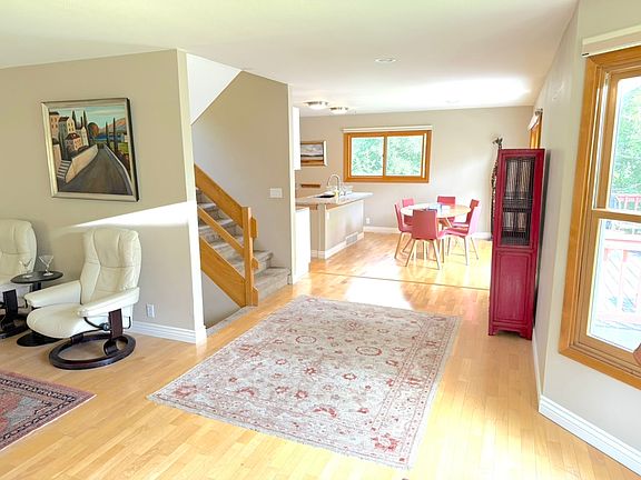 Inviting living room featuring hardwood floors and a cozy gas fireplace. Finished basement which includes a versatile space ideal for office, playroom, or guest area.