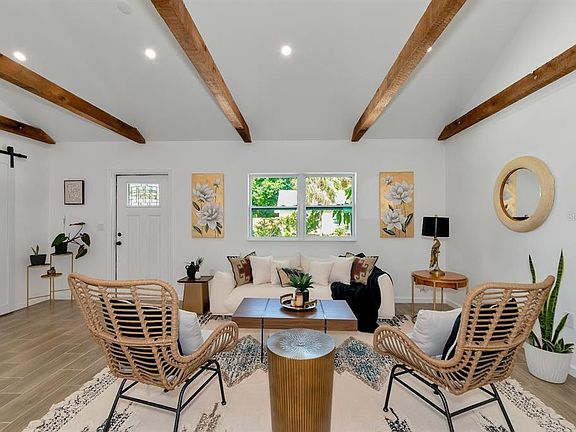One or more photo(s) has been virtually staged. Nestled in Sarasota's coveted Indian Beach district, this renovated residence stands as a testament to refined living, functionality and durability. A blend of luxury and coastal charm, this three-bedroom, two-bathroom haven beckons those with an eye for quality and style. The striking wood beam vaulted ceiling in the main living area gives an air of grandeur while maintaining an inviting ambiance. Custom tile flooring flows throughout the home while the kitchen boasts quartz countertops and is complemented by custom cabinetry that blend form and function. State-of-the-art stainless steel appliances and cleverly designed storage solutions ensure that there is no wasted space to be had. The extra large primary bedroom, features walk-in closets and an en-suite bathroom, complete with quality renovations. Whole home upgrades include impact-resistant windows and doors, roof replacement (2023) and HVAC system including duct work (2024) to ensure year-round comfort and peace of mind. All plumbing drain and supply lines as well as a new water heater, electric/panel rewire and batt insulation have been added and upgraded for added comfort and peace of mind. The exterior, clad in custom stucco, presents a façade of timeless elegance that harmonizes beautifully with the surrounding landscape. The residence also offers a fully fenced yard for private outdoor enjoyment. Whether you're hosting a cookout under the stars or simply basking in the Florida sunshine, the deck area provides the perfect backdrop for R and R. The home sits west of the trail, where you'll find yourself minutes away from everything Sarasota is known for. The John and Mable Ringling Museum of Art is just around the corner. For those with a penchant for the performing arts, the Van Wezel Performing Arts Hall stands ready to dazzle with world-class performances. Nature enthusiasts will delight in the proximity to Sarasota Jungle Gardens. And when the mood strikes for a leisurely stroll or a picturesque picnic, Ringling Bayfront Park offers a serene escape with breathtaking views of Sarasota Bay. For the avid shopper, the world-class boutiques and eateries of St. Armand's Circle beckon, while the powdery sands of Lido Key promise sun-soaked days and unforgettable sunsets. The ever growing University Town Center is also a popular option for shoppers and can offer endless shopping and entertainment as well. It's not just a place to live; it's a place to thrive, to entertain, to retreat, and to call home. Welcome to your slice of paradise, where luxury meets livability, and every day feels like a vacation. This home is being sold as is. Information contained in this listing is deemed reliable but not guaranteed. Buyer/buyers agent to verify all information and do own due diligence.