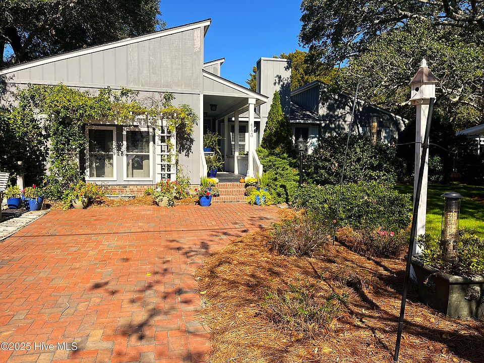 Nestled in Bonham Heights, known for its established, tree-lined streets and coastal atmosphere, this charming 3-bed, 3-bath home, situated on a high buff, offering a beautiful view of Bogue Sound. The residence features an open- floor plan, with split bedrooms vaulted ceilings and ample natural light. The updated kitchen offers new stainless-steel appliances, gas range, granite countertops, and 'subway tile'' backsplash. Notable is the generous size Master Suite that includes a cozy sitting area. An additional feature is a large room with storage access, perfect for an office, den or bedroom. This home includes hardwood floors, handicapped accessible bathroom, a handicapped accessible deck, natural gas, a wet bar with ice machine, and a whole house Generac Generato. A Soft Water System is available. This property has beautiful mature landscaping with a canopy of majestic live oaks and a large storage building with Cedar Shakes siding, and electrical supply. Enjoy the convenience of neighborhood sound and beach access; and conveniently located to excellent dining and shopping.