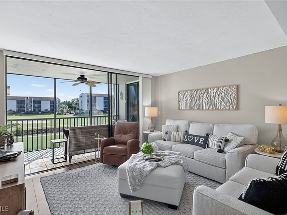 Discover refined living in this 3-bedroom/2 bath residence offering prime southern exposure and sweeping views of the golf course and tranquil lake. Bathed in natural light all day long, this beautifully updated condo combines modern design, high-end finishes, and effortless comfort. The fully renovated kitchen showcases custom-built cabinetry, high-end quartz countertops, and a Café appliance package, a stunning blend of luxury and function. Throughout the home, Luxury vinyl flooring provides a clean, contemporary flow from the living areas to all bedrooms, with the primary bedroom featuring new carpeting with high quality padding. Both the guest and primary en-suite bathrooms have been thoughtfully updated with modern fixtures. Enjoy peace of mind with newer HVAC and quality craftsmanship throughout. This spacious layout is ideal for both seasonal escapes and year-round living. Located within The Landings Yacht, Golf & Tennis Club, residents enjoy a private country club lifestyle with golf, tennis, pickleball, bocce, a marina with boat slips (based on availability), fitness center, and on-site gourmet dining. Picturesque walking and jogging trails wind through lush tropical landscaping, creating a serene resort-style setting. Elegant, light-filled, and move-in ready, this condo captures the best of luxury living in one of Fort Myers’ most sought-after communities.