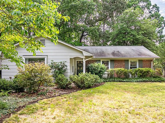 Adorable, updated cottage style ranch with large private back yard. Bright, and partially open style. Large eat in kitchen with large breakfast bar. Appealing family room with masonry fireplace and wood stove insert. Insert can be removed but it is a great source of back up heat/can heat the whole house. Den is spacious with beautiful picture window- windows are larger than usual and have been replaced. Hall bath vanity updated. Newer LVP throughout except for one bedroom. Smooth ceilings. Entire interior recently painted. Primary bedroom has full private bath. Well maintained home with lots of updates, in move in ready condition. Large yard with raised garden beds. Patio for entertaining, and large shed for storage. Attached Storage room on side of the home for additional storage area. Covered front walkway is convenient for weather protection. Very convenient location approximately 10 minutes to downtown Durham, 20 minutes to RTP and RDU, 25 minutes to Chapel Hill and UNC . Quiet neighborhood .
