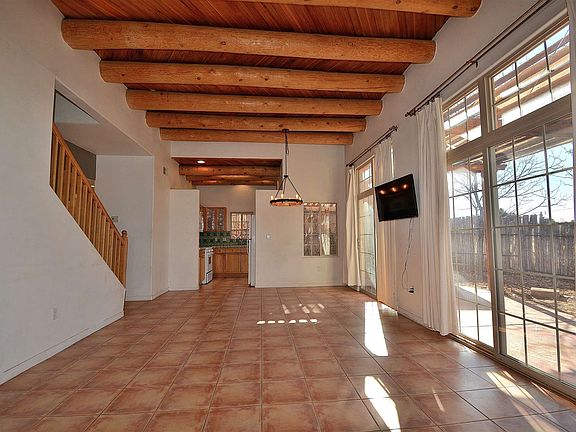 This lovely townhouse has character! Set at the back of a small cul-de-sac with a private yard that is adjacent to a common area, this home has a sense of privacy. Downstairs there are ceramic tile floors. Mexican tile decorates the corner gas fireplace that has a decorative copper cover to keep the air out as needed. The kitchen is adorable with green Mexican tile and tinwork cabinets. The downstairs bedroom opens to a private outside sitting area and directly accesses the downstairs bathroom. Upstairs, the spacious office opens to a lovely deck with views of the Sangre de Cristo mountains. The master suite is quiet and private at the back of the house. Both baths have charming Mexican tile counters. The dishwasher and stackable washer/dryer were new in 2018. The microwave and carpet are brand new and the furnace has been completely refurbished. Natural light abounds.