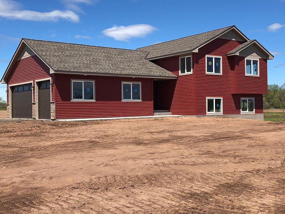 3BR/2BA on 7+ acres close to Wild River State Park and Sunrise River. Attached 3-car garage, very popular design with large foyer/mudroom that includes the laundry area, custom cabinets, central air, and 3rd BR finished in lower level with huge walk-in closet and setup for future walk-thru bath. Open concept living area with vaulted ceiling and great views.