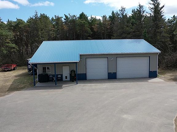 Discover your private sanctuary nestled on 5 wooded acres in a desirable location! This beautifully updated 4-bedroom, 3-bath home features modern enhancements, including newer windows and siding that elevate its inviting charm.The spacious main floor boasts massive windows that flood the great room with natural light, showcasing a stunning fireplace and a vaulted ceiling—ideal for cozy gatherings. Outside, you'll find a remarkable 40 x 56 shed equipped with floor heat, a half bath, a kitchen area, and a spare bedroom/office, offering plenty of room for hobbies, entertaining, or storage with a convenient mezzanine. The property also includes a lawn irrigation system to keep your outdoor space lush and vibrant. An asphalt driveway ensures a tidy entrance to your serene oasis. Don’t miss this incredible opportunity—this property won’t last long!