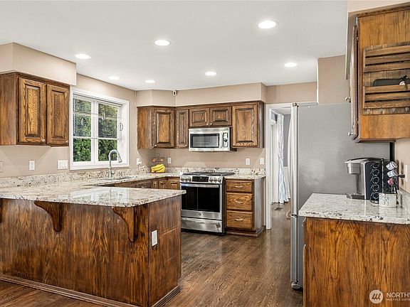 Beautifully maintained 4-bedroom home in the desirable Summit at Stonebrook neighborhood in the Brown's Point community. Thoughtful floorplan includes a main-level 4th bedroom currently used as an office, spacious formal living and dining rooms, and an open concept family room w/gas fireplace open to the kitchen w/granite slab counters, gas cooking, pantry, & SS appliances. Hardwood floors, vaulted and tray ceilings, wainscoting, and skylights add warmth and style. Enjoy 2 decks, including a Trex deck off the french doors in the family room, stepping down to a paver patio thoughtfully separated from the koi pond and garden oasis. A large side yard & multiple fruit trees encompass this corner lot with 3-car garage on over 1/4 acre. Act fast!