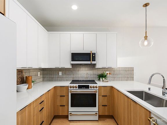 Last home remaining!! Stunning Olympic Mountain sunsets, exquisite interior designer influenced finishes showcase these custom residences. Centerpiece kitchen with Bellmont cabinetry, Cafe appliances accented by stylish fixutres & backsplash & soft tone hardwood floors. An open floorplan with tall vertical windows captures the abundance of natural light. Lutron Caseta smart lighting. Primary w/ dual vanity bath, heated floors, walk-in shower. 2 additional bedrooms provide an excellent opportunity for guests or a home office. Beautiful rooftop decks to enjoy the amazing sunshine against the backdrop of the Sound. Dedicated 1-car parking EV prepped. Walk to the beach/bike to Alki and enjoy the unique splendor of West Seattle.