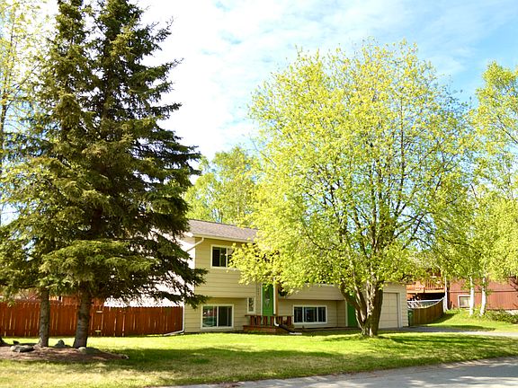 $10k PRICE DROP! Nestled in South Anchorage near parks and trails, this beautiful family home features an open floor plan w/ updated kitchen & baths, 2 separate living areas, laundry room & lrg bedrooms. The fenced corner lot offers a shed, raised beds, RV parking pad & mature trees. The huge south facing deck off the kitchen is perfect for family get togethers and enjoying time outside.
