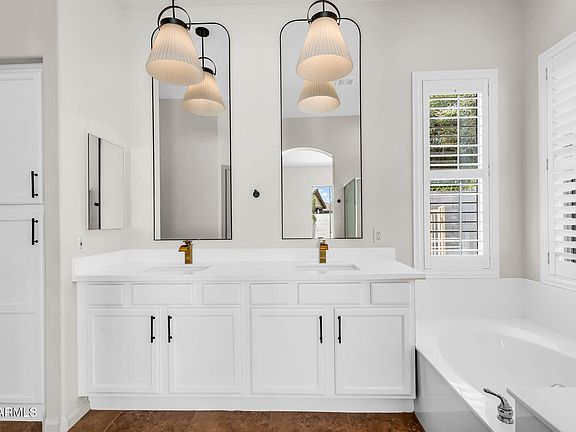 Welcome to 4121 E. Patrick St.—a beautifully updated 2,735 sq ft single-level home in the sought-after community of Ashley Heights. Featuring 3 full bathrooms, two master suites, and a 3-car garage, this layout offers rare flexibility for multi-gen living or guest comfort. The home has been thoughtfully upgraded throughout: brand-new carpet, updated toilets and faucets in all baths, modern lighting (kitchen, hall, baths, breakfast nook), updated mirrors, outlets, switches, and covers. Fresh paint on walls, ceilings, and doors gives the entire home a clean, modern feel. The kitchen is both functional and beautiful, with white cabinetry, quartz countertops, stylish pendants, and updated fixtures. Both primary suites offer generous space and privacy, ideal for extended family or visiting guests. Step outside to a private backyard oasis with a sparkling pool, built-in BBQ, new Hayward pool sweep, updated sprinkler system, and exterior lighting around the entire home. All of this in a quiet Gilbert neighborhood near top-rated schools, restaurants, and shoppingyour perfect Arizona lifestyle starts here.